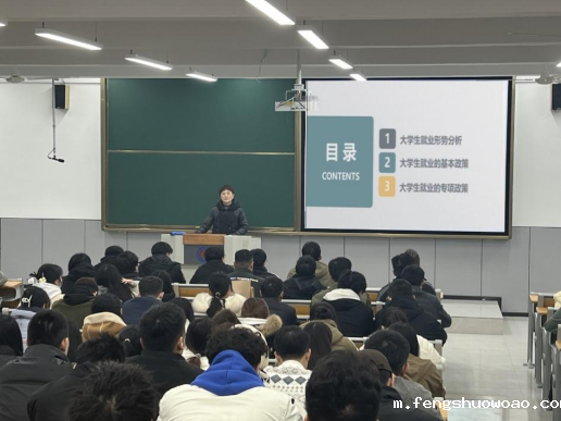 马志翠老师从就业趋势、影响毕业生就业的因素、毕业生就业难的原因分析了当前大学生就业的形势,详细向同学们讲解了大学生就业的基本政策和专项政策。让同学们正确认识当前就业形式,通过对就业形式的分析,明确自身就业目标。